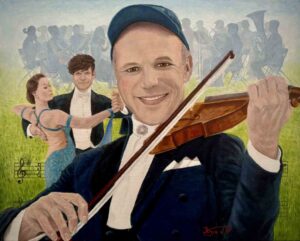 SUBMITTED INFO: KRYS VON TORNADO USA “Viennese Waltz” 2024 16 x 20” Oil on canvas. http://www.krysvontornado.com/