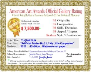 SUBMITTED INFO: YUQIAN SUN CHINA http://www.yuqiansun.com “Artificial Fairies No.11 / My Little Companion” 2022 45x60cm Watercolor on paper.
