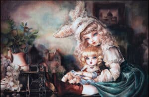 Yuqian’s art practice is derived from doll photography, which she started practicing when she was a kid. Inspired by the visual beauty of these mass-produced toy dolls, her paintings discuss the cultural context about the meanings behind objects that are human beings’ artificial imitations. While she proceeds to explore the borderline of life and lifelessness in her work, she captures the sublime aesthetics of ideal humanoid form worshipping in doll images she creates.