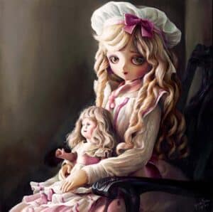 Inspired by the visual beauty of these mass-produced toy dolls, my paintings discuss the cultural context about the meanings behind objects that are human beings’ artificial imitations. I turn these externally lifeless models into internally living objects by capturing their subtle expressions as if they could talk with their gem-like eyes. While I proceed to explore the borderline of life and lifelessness in my work, I capture the sublime aesthetics of ideal humanoid form worshiping in doll images I create.